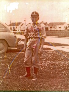 Fifty-One Years Later, in 1948, Houston kids were still decking out in Buff facsimile uniforms that their parents helped them acquire in the years prior to Little League coming to town. Here we are, my little brother John and me, at ages 10 and 6, standing in the front yard of our Pecan Park home, wearing Houston Buff uniforms that our mom made for us. They had those “iron-on” letters available to uniform creators in those days and Mom just used them to spell out “HOUSTON BUFFS” in two lines across the chest of the jerseys. I tried to tell her that she wasn’t following the Buffs plan for putting their jerseys together, but she just told me to shut up and be grateful I was getting anything at all.