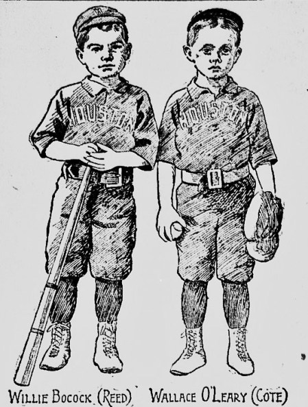 Recently two little boys appeared at League park during a game, each of whom was attired in a full uniform of the Houston team. No one in the audience could recognize them. When asked their names they would reply: “Reed and Cote.” They occupied seats on the bench as Mascots. The father of one of the young fellows had them photographed and one of the pictures was presented to the sporting editor of The Post, and it appears above, the boys’ names being shown under each of them.