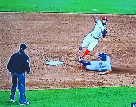 Odor getting off his wild throw as Altuve slides.