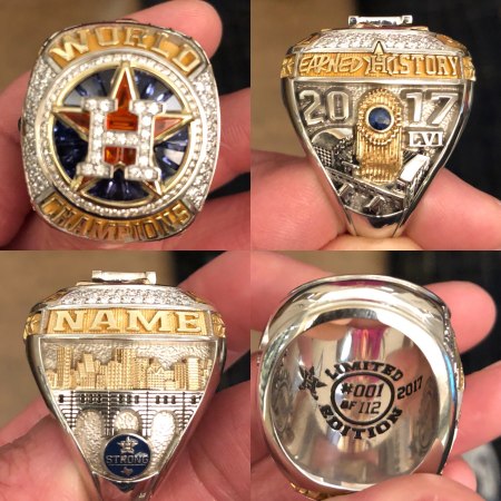 Congratulations, Astros, on those beautiful new symbols of your accomplishment in behalf of us all! Everyone in town and everything in “H” town that represents that same zest for accomplished athletic excellence is now consumed in awe by the grand looking hardware version of “best in the world” – and also all these rings represent to all others about the spiritual core and drive of our wonderful city. – Right, Rockets, Texans, and others?