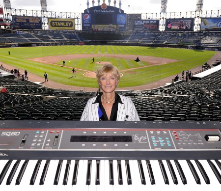 New Hall of Eternals Inductee and longtime White Sox organist Nancy Faust pauses long enough to say the following: “Please pay attention to these last two sections. They say exactly as possible how one gets inducted into the Hall of Eternals and organist and how you may join The Baseball Reliquary and help us expand the search for future picks.”