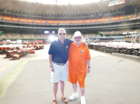 June 3, 2015: Ardent Astro fans Bob Dorrill (L) and Yours Truly Bill McCurdy even wore the team’s colors for this awesomely grand occasion.