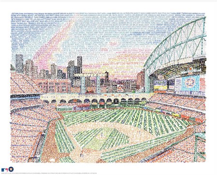 It is built upon the names of every player in the history of the Houston MLB franchise through a certain unspecified date.All of their names have been written in to form the shape, color, and scope of the ballpark the club now occupies in 2018.