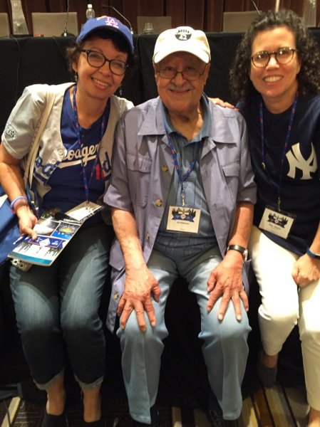 Often the highlight of any SABR convention is attributed to serendipity and could not be scripted within the confines of the program. On Friday afternoon I decided to pass on the Mets panels at Citi Field in order to visit the United Nations and the Rockefeller Center before riding the 7 train on my own to the ballgame. While awaiting the gates to open, I overheard a woman exclaim “Do you know who’s going to be at the game? Ed Charles!” Assuming the Glider’s appearance would be public, I asked how I could meet him. The woman told me to wait by a certain gate just before game time, and that’s where he would be. While waiting for Ed Charles to arrive, I spent time talking to Stan “The Man” Manel, a retired insurance man who has worked as an usher for the Mets since 1962. Although Jacob deGrom lost his bid for a no-hitter after five innings, he did hang in for the win, a 2-1 decision over Philadelphia.