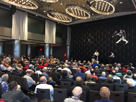 Saturday morning I attended the donor breakfast, at which time executive director explained why there was no banquet and no player panel. Given the costs to organize a banquet at the Hyatt, SABR would have been required to charge upwards of $100 to attend. Similarly, if Phil Linz can earn $2,500 to speak to Hadassah of Ozone Park, SABR did not think he would likely accept an invitation to attend a pro bono speaking engagement.