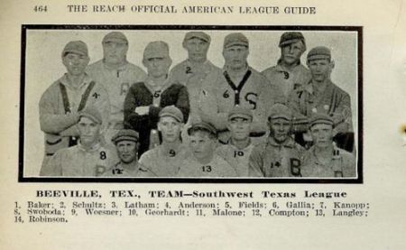 Our second question from 3/24/10 was simply this: Why does today’s featured photo showing Bert Gallia with the 1910 Beeville club contradict the fact that Baseball Reference (dot) Com shows Bert Gallia not breaking in to pro ball with Beeville and Laredo of the Southwest Texas League until 1911. Chicoine’s article has Gallia down for a 3-6 record with Beeville in 1910 and also states that he doesn’t join Laredo until 1911.