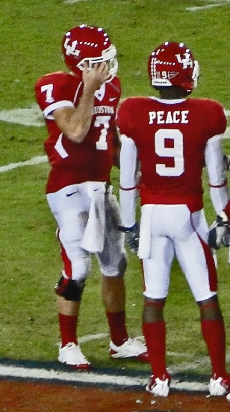 The absence of a superior running game, effective pass blocking, the presence of # 8, with his helmet on his head, simply pouting on the sidelines and waiting for his chance to go back in at QB have been big. Throw in the the disastrous losing streak he inherited, poor play in the defensive secondary, undisciplined dumb play and all the penalties that spring from it, an unreliable kicking game – and the QB is almost set up to take the rap for the mistakes of so many others. Throw in the dour inflexible conservatism of our likeable, but media-beleaguered head coach and … well … taking over at QB for the 2013 Texans has been about as easy as planning a book club meeting at a house that’s already on fire. Had Keenum been able to either start the season or take over earlier, for better or worse, as the starter – with no threat of replacement after a bad series, thing could have gone so much better. This is a kid who did some pretty great statement playing with a weighed down chance. – Remember the five great TD catches by Andre Johnson? They came served up by a guy who could have quit last year when he set all those records at UH and didn’t even get drafted. He also could have quit after one year on practice squad and little focus on his own preparation for ever starting.
