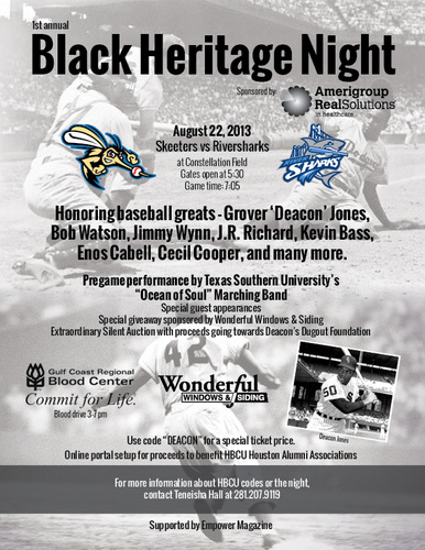 And you can definitely take the headline of this column in the two ways it’s intended. The “Black Heritage Night” program of the Sugar Land Skeeters at Constellation Field that was offered as a pre-game feature on August 22, 2013 was both a night a pride in the unifying goal quality of black baseball players over the years and also a tribute to the program’s special guest, the great Charlie Pride, a country and western singing star who also spent his early years in pursuit of that same dream of the others as a professional baseball player.