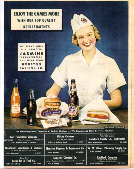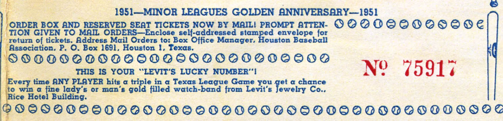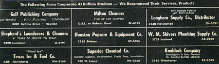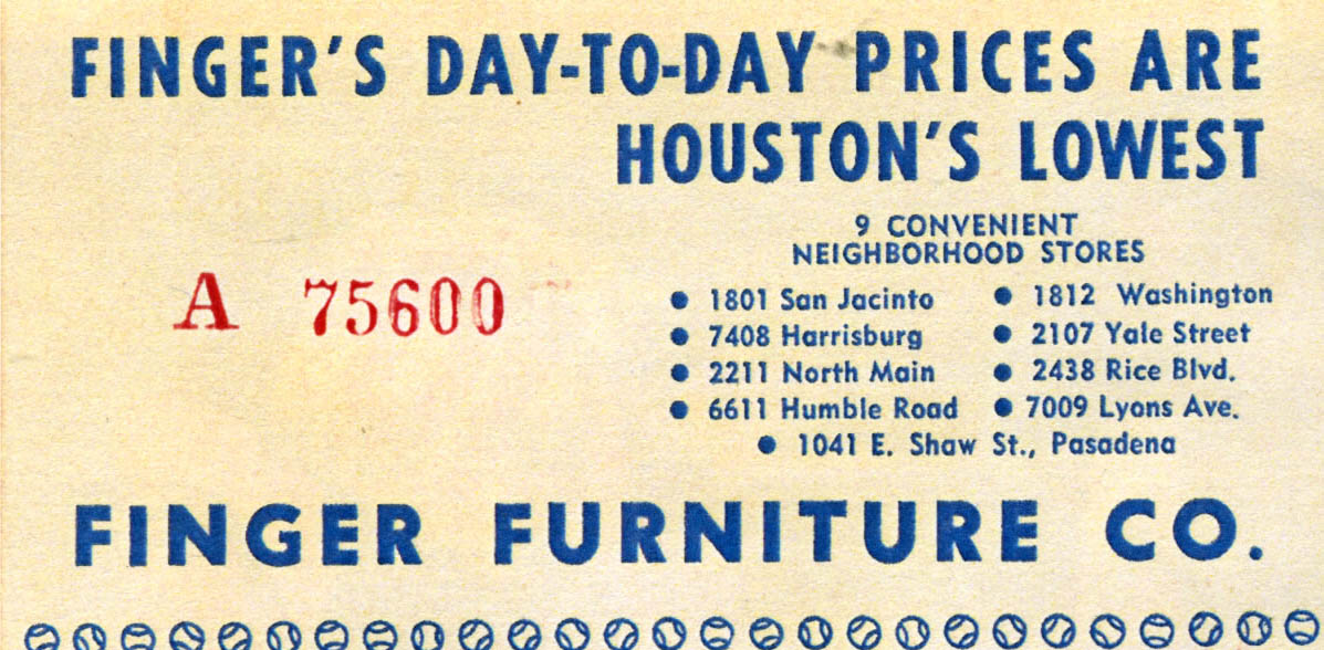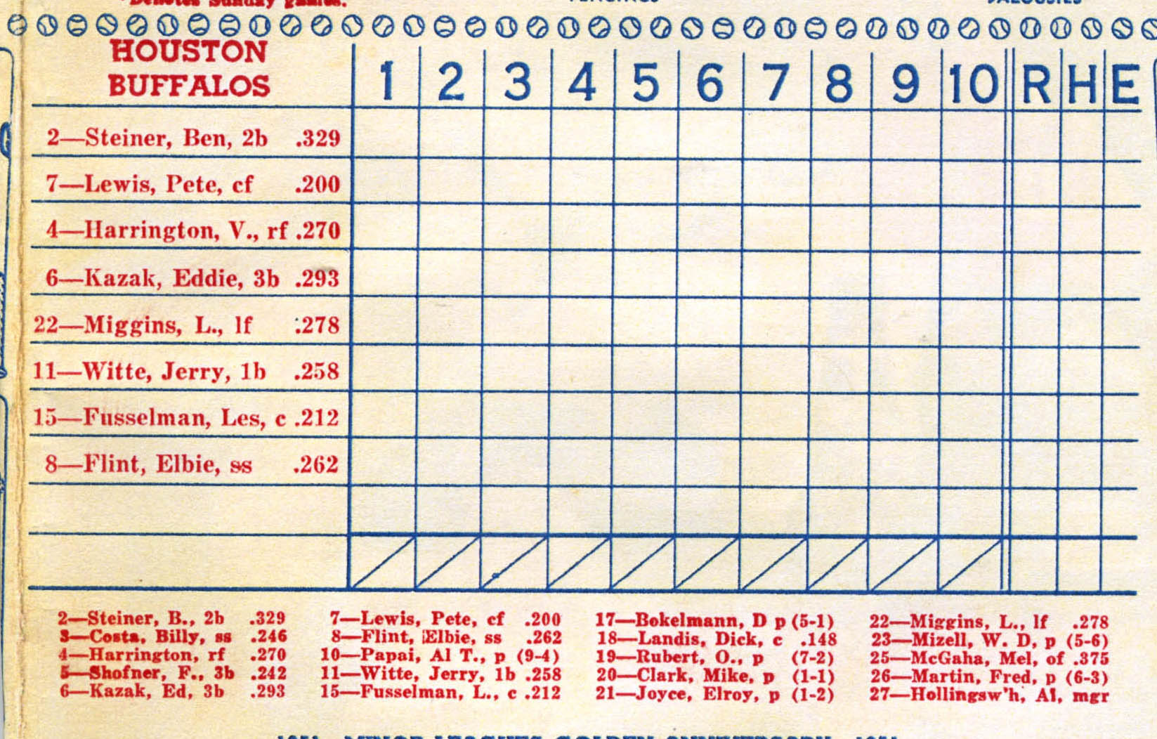 The fans also caught a glimpse of three Houston players who would become major league managers: Johnny Keane (Cardinals, 1961-1964; Yankees, 1965-1966), Walter Alston (Dodgers, 1954-1976), and Herman Franks (Giants, 1965-1968; Cubs, 1977-1979).