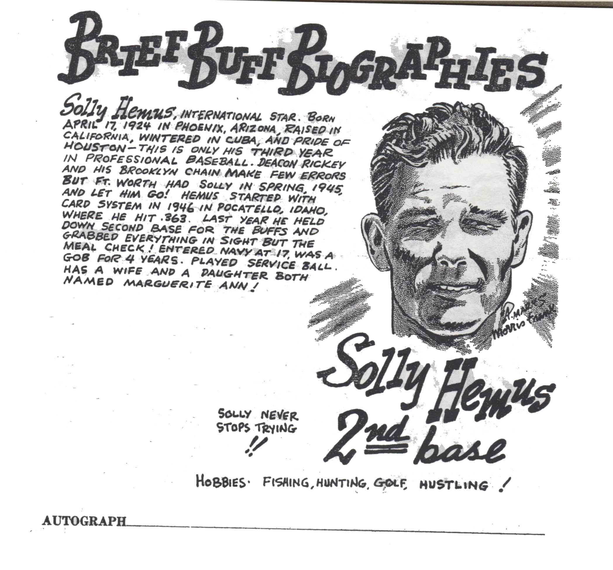 Excerpt from “Your 1948 Houston Buffs, Dixie Champions: Brief Biographies By Morris Frank and Adie Marks (1948).